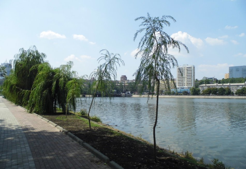В настоящее время часть велодорожки заслоняют ветви ивы, которые практически на всём склоне берега украшают набережную Кальмиуса,