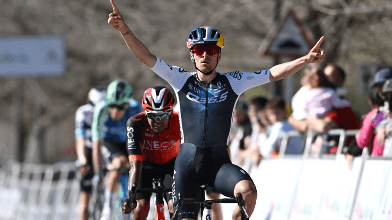 После резкого последнего подъема Q36.5 Rider Pidcock запустил свой спринт с 150 млн, а его бывший товарищ по команде Ineos Grenadiers финишировал вторым.