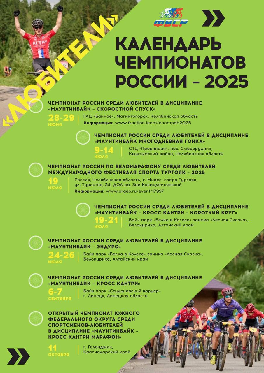 2025 год не станет исключением! Представляем вашему вниманию календарь чемпионатов России среди спортсменов-любителей в различных дисциплинах маунтинбайка!