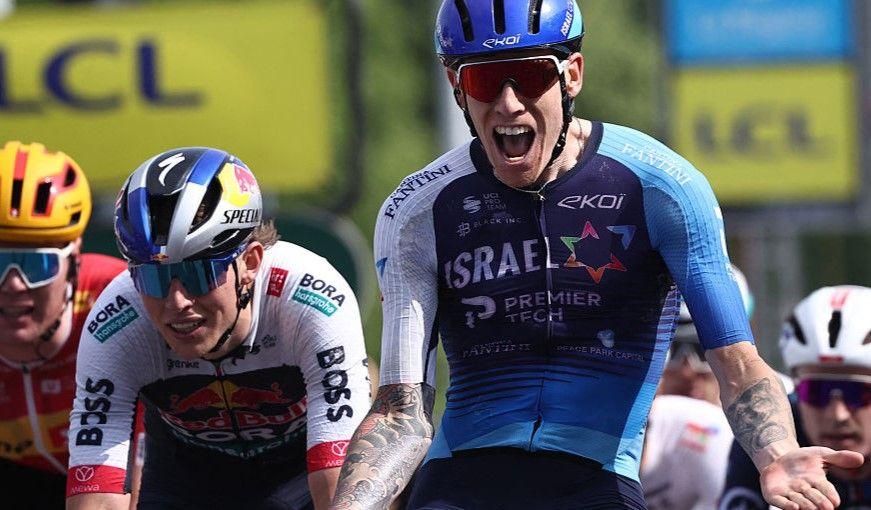 Британский Джейк Стюарт выиграл свою первую гонку мирового тура с победой на пятой сцене в критериуме дю-доуфхин после того, как спринтел.