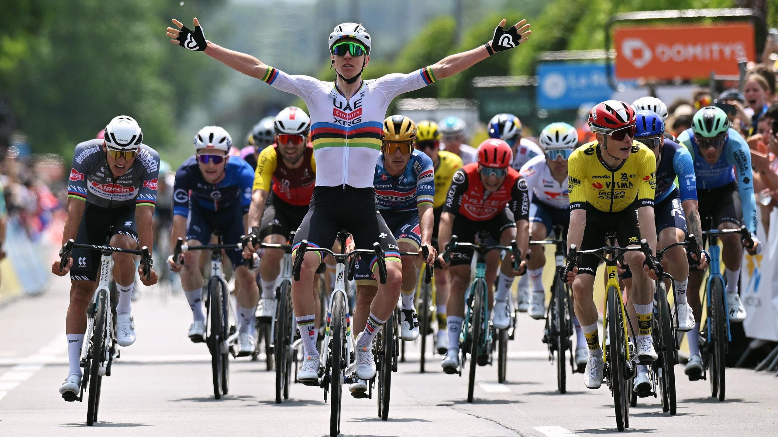 Tadej Pogacar выиграл спринт за линию против своих главных соперников, поскольку он заявил о первой стадии критерия дюупина.