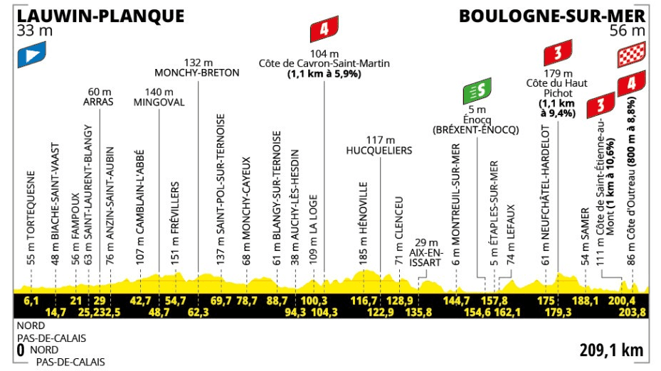. Второй этап также является самой длинной в гонке в этом году, охватывающей 209,1 км, а пелотон пробивается через сельскую местность в районе Hauts-De-France, направляясь к проливу Dover.