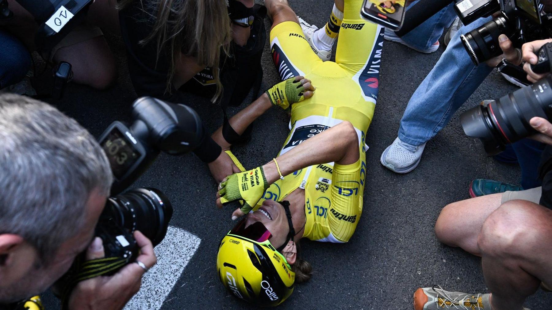 Эмоциональный и измученный Ferrand-Prevot лежал на полу после пересечения финишной черты в Chatel, когда величина ее достижения начала снижаться.