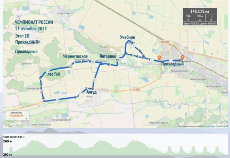 Результаты20 Автор: worldvelosport.com13 сентября 2025г.13 сентября 2025г. г. Прохладный — г. Прохладный, 148.1 км 1. Владимир Гороховик (Республика Беларусь / «Минск») 2. Михаил Вьюношев («Мангазея — Московский спорт») 3. Артур Ершов (Solomon Cycling Team) Данные предоставлены сайтом VELOLIVE результаты и рейтинги велоспорта