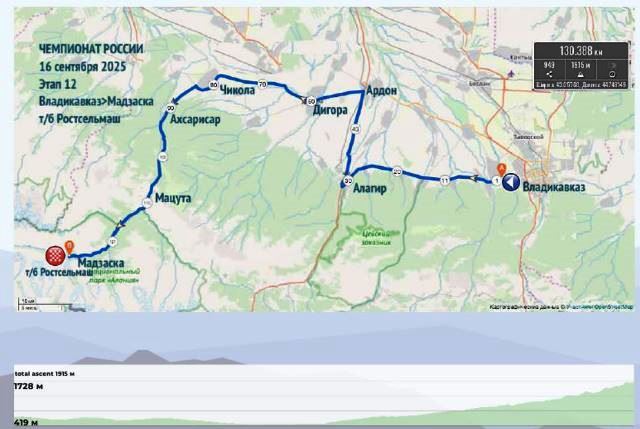 Владикавказ — Дигорское ущелье, Мадзаска, т/б Ростсельмаш, 130,38 км 1. Даниил Пронский