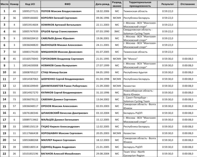 Черкесск, кольцевая гонка, 49,9 км 1. Максим Попов