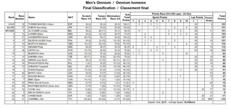 Чемпионат мира по велоспорту на треке-2025. Омниум. Мужчины. Результаты