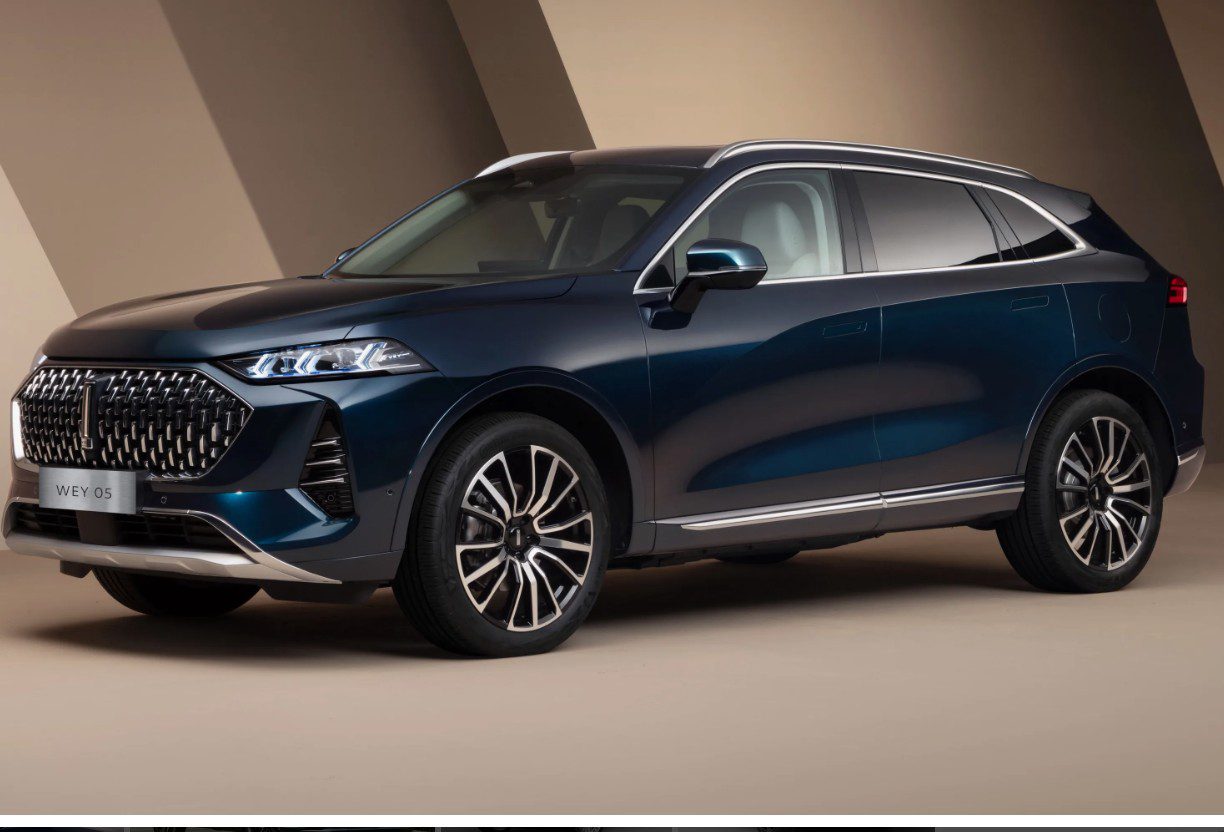 - WEY 05 – мощный гибридный кроссовер последнего поколения. Оснащен двухлитровым бензиновым турбомотором мощностью 150 л. с., интегрированный синхронный электродвигатель с отдачей 163 л. с. (передает вращение на передние колёса). На задней оси установлен отдельный синхронный электромотор мощностью 183 л. с., который интегрирован двухступенчатым редуктором.
