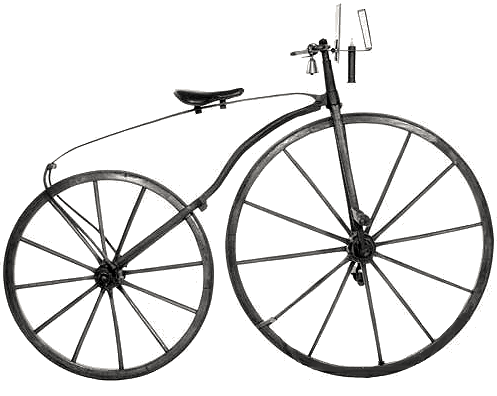 В этом же 1869 году конструкторы велосипедов отказались от деревянной рамы и теперь рамы велосипедов изготовляли из стали, а металлические колёса велосипеда стали обтягивать резиной, для меньшей тряски велосипедиста, хотя надувная камера была изобретена ещё 25 лет назад, конструкторы не придавали ей значения и обтягивали колёса велосипедов слоем цельной резины.
